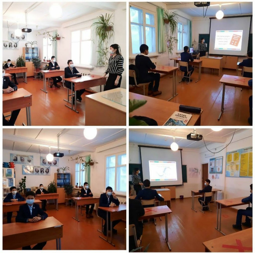 Мектеп психологінің 8-9 сынып оқушыларымен "Жасөспірімдердің денсаулығы мен өмірлік дағдыларын қалыптастыру және суицидтің алдыналу" бағарламасы аясында жүргізілген дәрістен көрініс