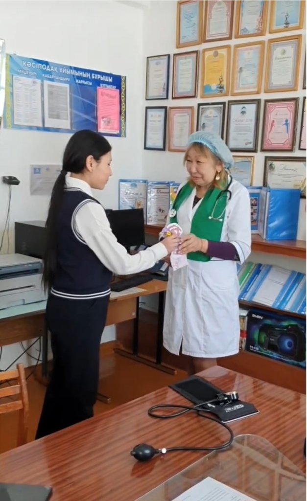 «Арайлы Атамекенім» челленджі. Жолдыбай ауылының фельдшері Бақыт Хабиденқызына өзін-өзі басқару ұйымы алғыстарын білдірді